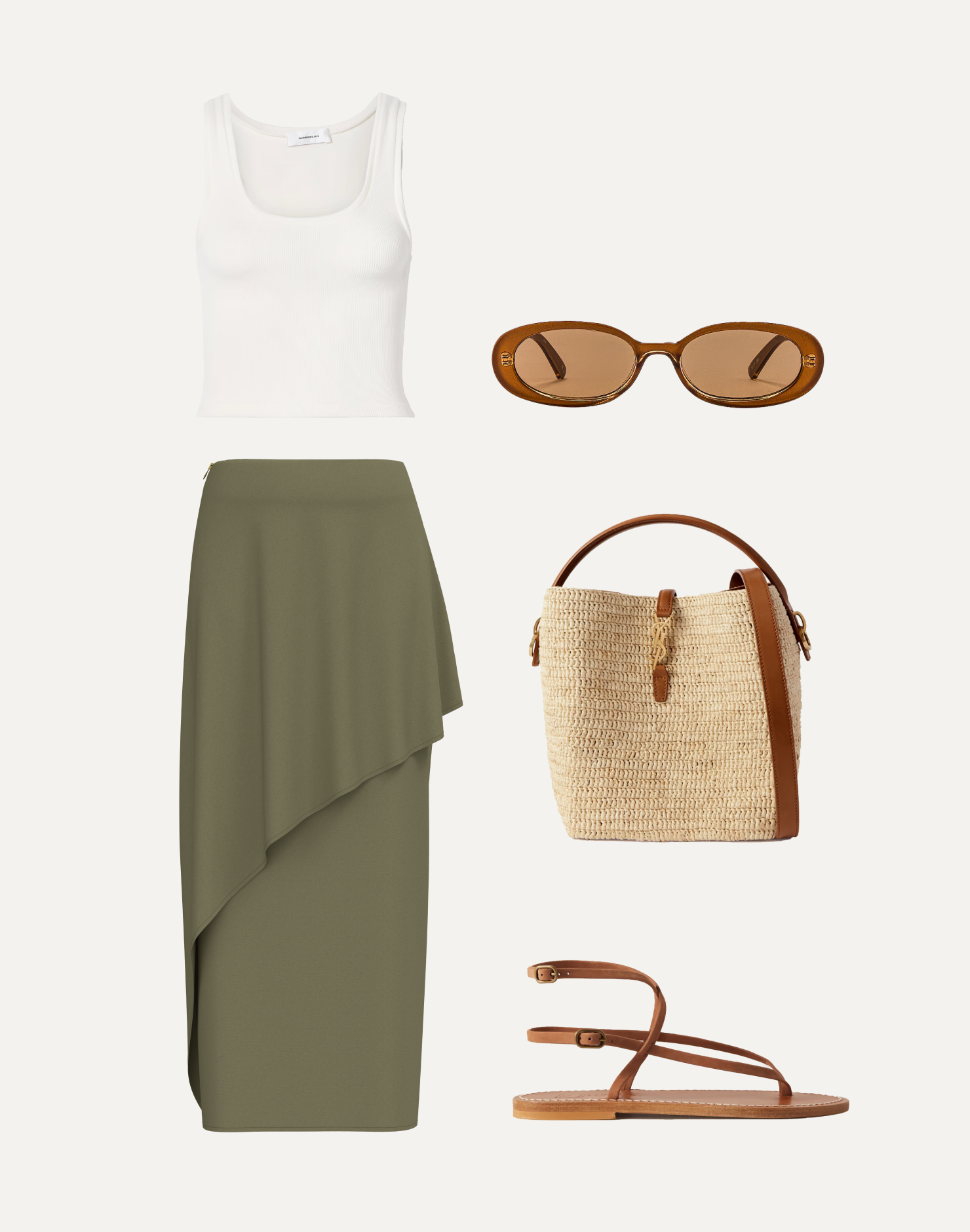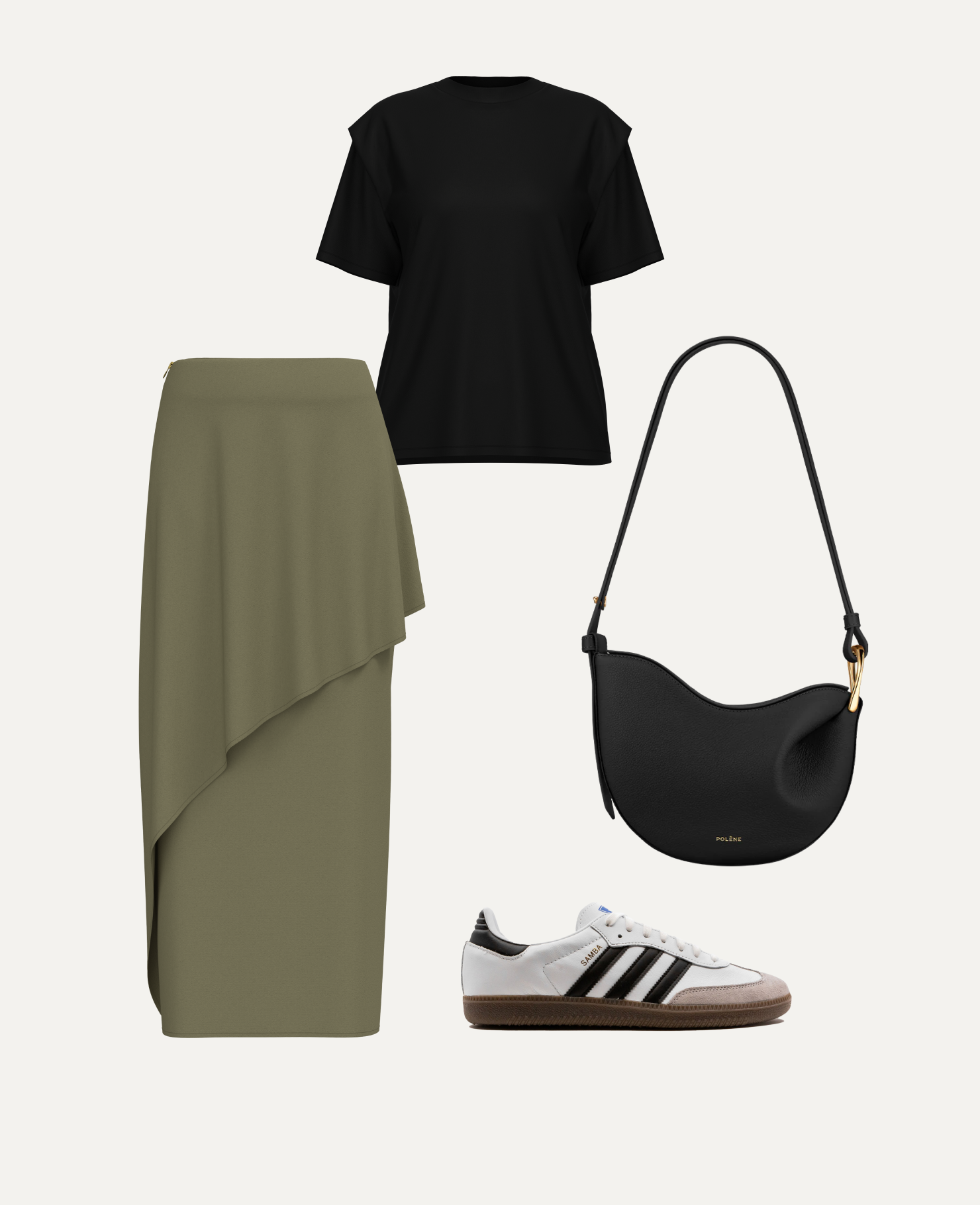 La Falda Anouk es una falda larga de silueta recta, tipo lápiz, con un corte asimétrico sutil que le da un aire contemporáneo y sofisticado.