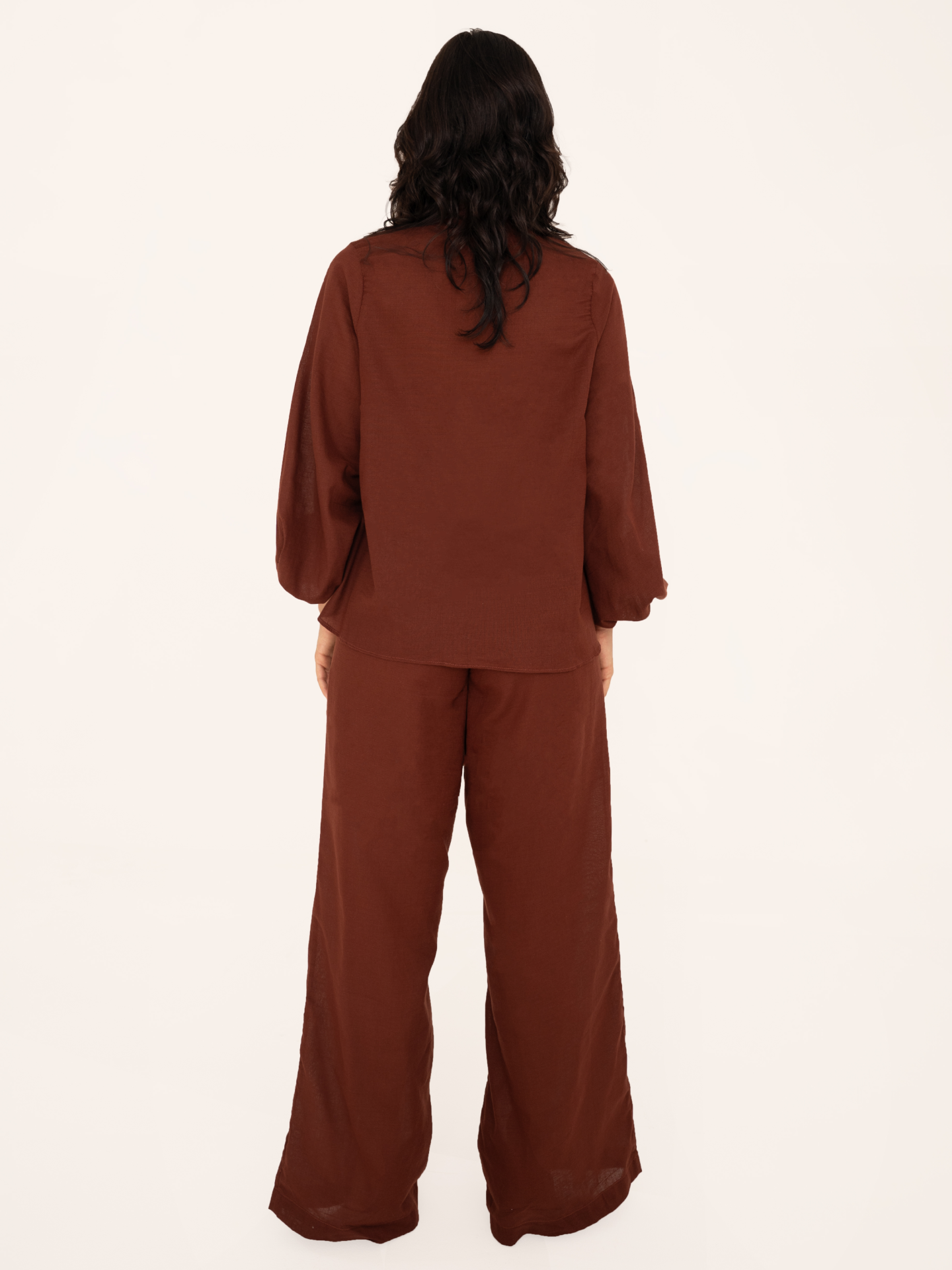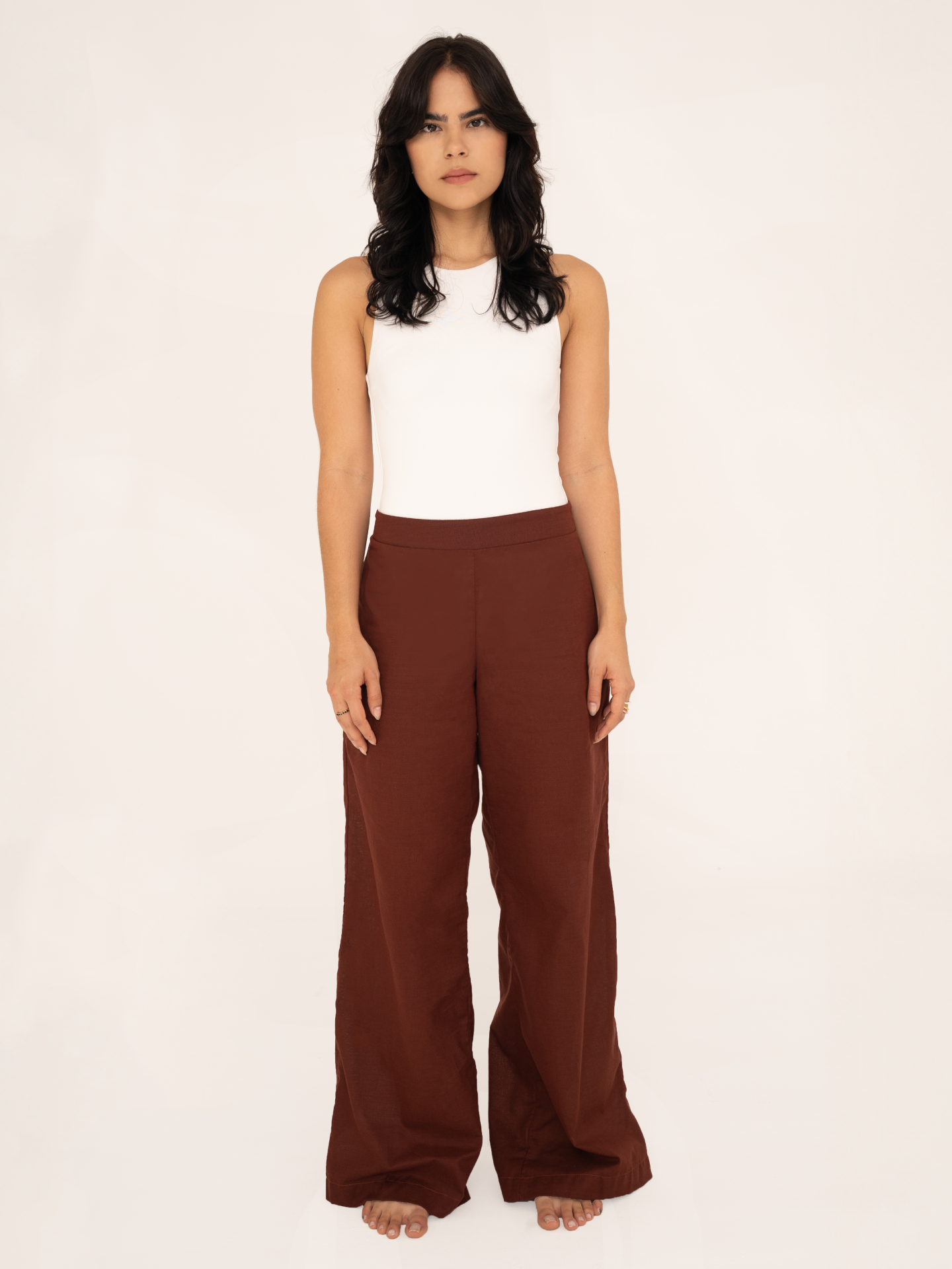 Confeccionado en una mezcla de algodón y lino, este pantalón es perfecto para climas cálidos y fríos.