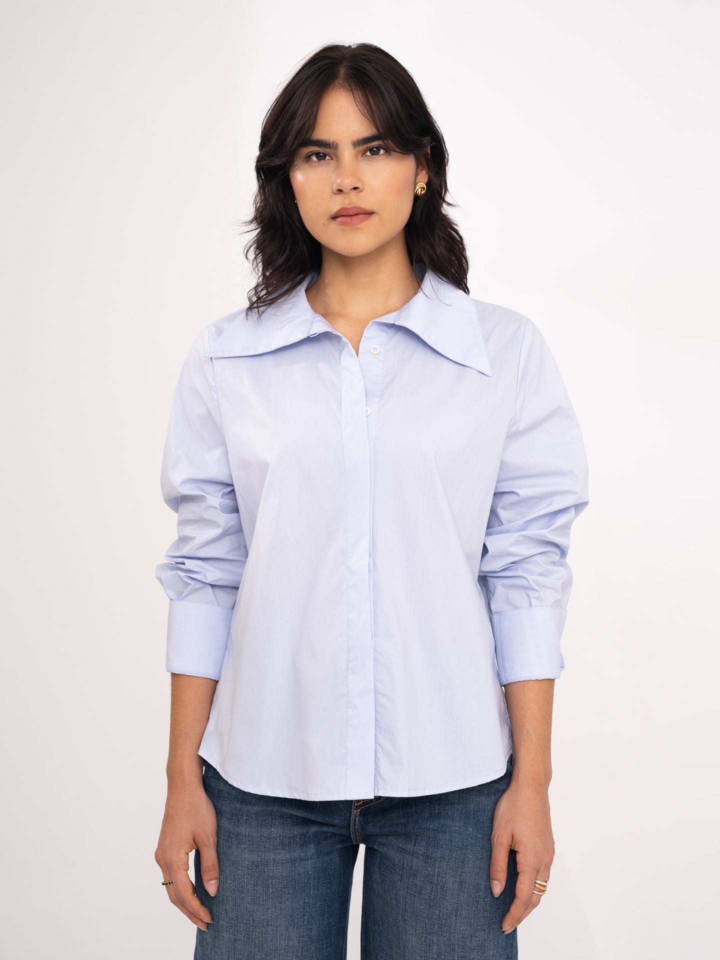 La camisa Liz reinterpreta el clásico diseño de camisa básica con un giro moderno y sutilmente inesperado.