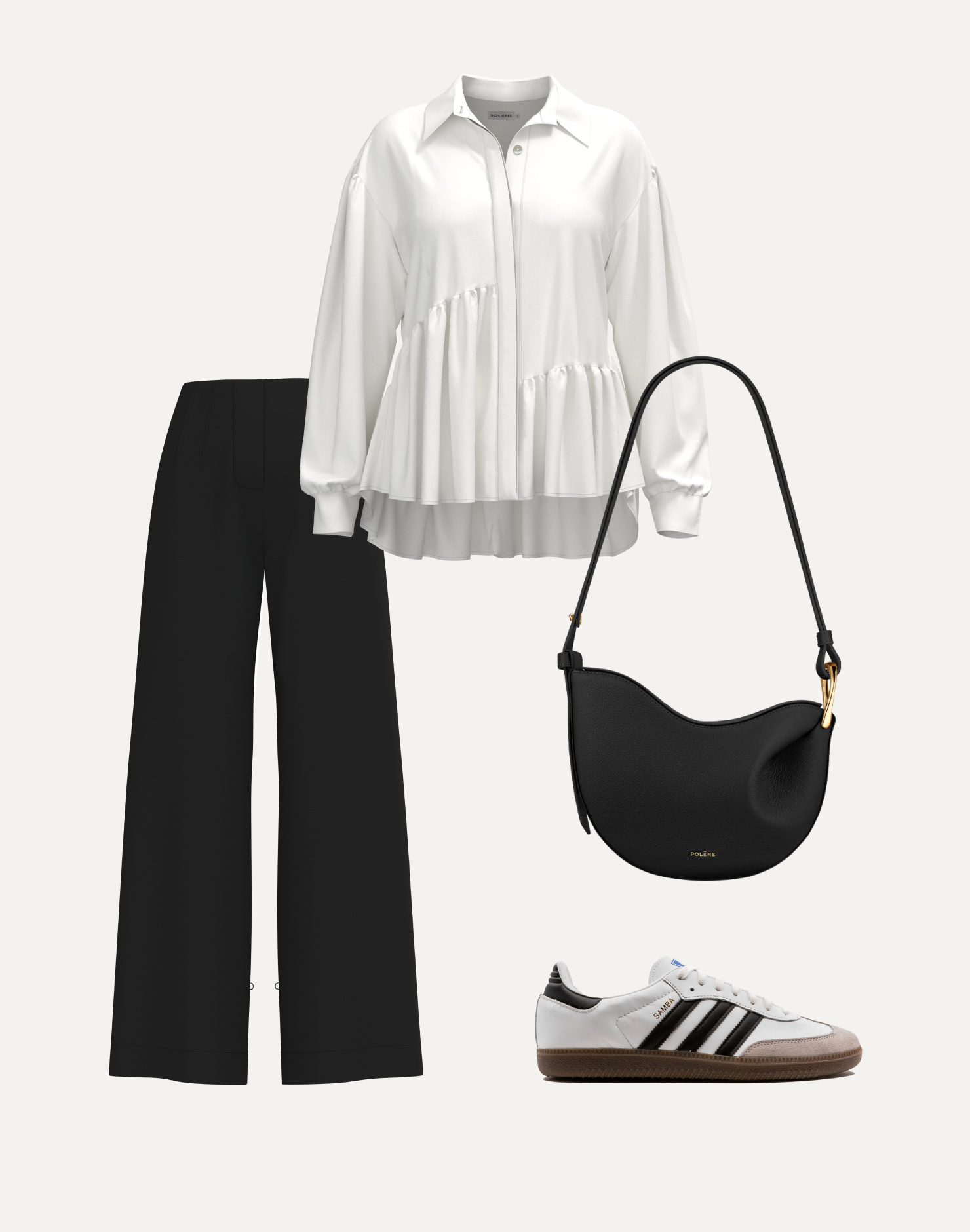 La Camisa Olivia tiene un corte asimétrico, mangas globo y un largo (justo) ideal para combinar con diferentes estilos de pantalones y faldas. Esta camisa es la definición de versátil.