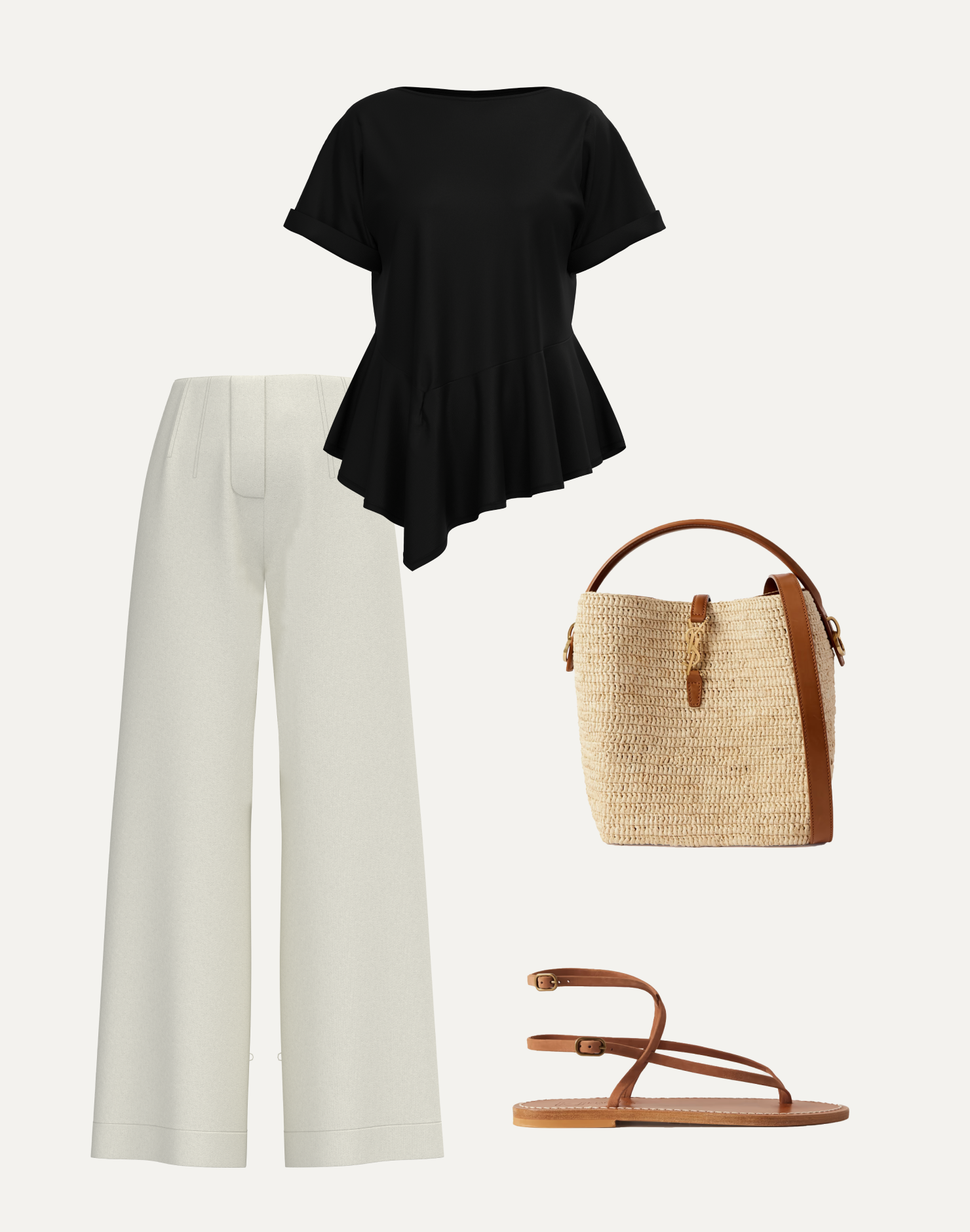 La Camiseta Benthe tiene una silueta de cuello bandeja, corte asimétrico y fit ajustado. Su largo es ideal para combinar con cualquier pantalón y estilizar tu figura.
